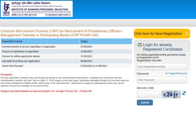 IBPS PO 2023 Recruitment: बैंकिंग कार्मिक चयन संस्थान (आईबीपीएस) ने 1 अगस्त को प्रोबेशनरी ऑफिसर/मैनेजमेंट ट्रेनी (सीआरपी पीओ/एमटी-XIII) के पदों पर भर्ती के लिए ऑनलाइन आवेदन प्रक्रिया शुरू कर दी है. इच्छुक उम्मीदवार आधिकारिक वेबसाइट www.ibps.in के माध्यम से ऑनलाइन आवेदन कर सकते हैं. ऑनलाइन आवेदन फॉर्म जमा करने की अंतिम तिथि 21 अगस्त है.