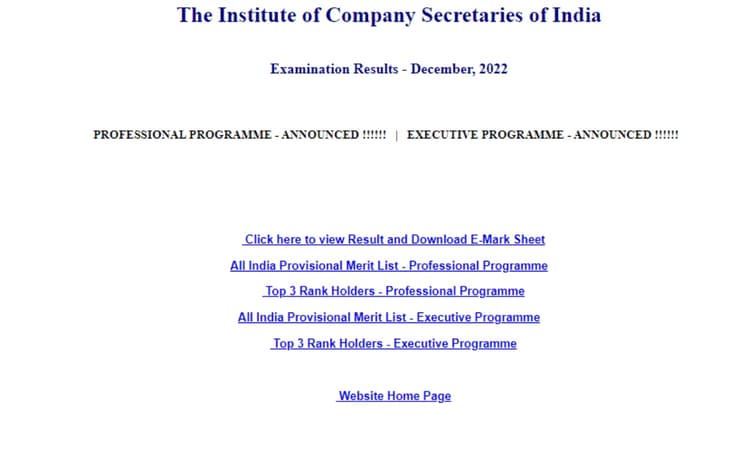 ICSI CS कार्यकारी रिजल्ट डायरेक्ट लिंक