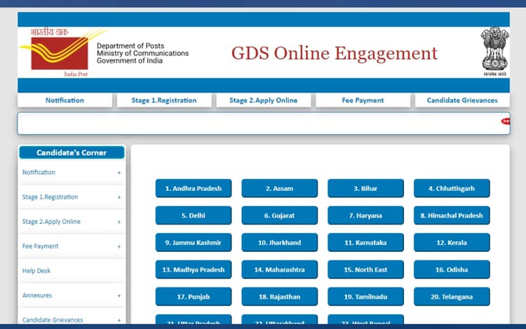 आधिकारिक वेबसाइट पर जाएं: इंडिया पोस्ट की आधिकारिक वेबसाइट पर जाएं, जो https://indiapostgdsonline.gov.in/ है.