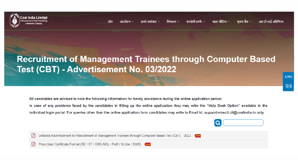 Coal India Limited Recruitment 2022: ऑनलाइन आवेदन करने के डायरेक्ट लिंक यहां है क्लिक करें.