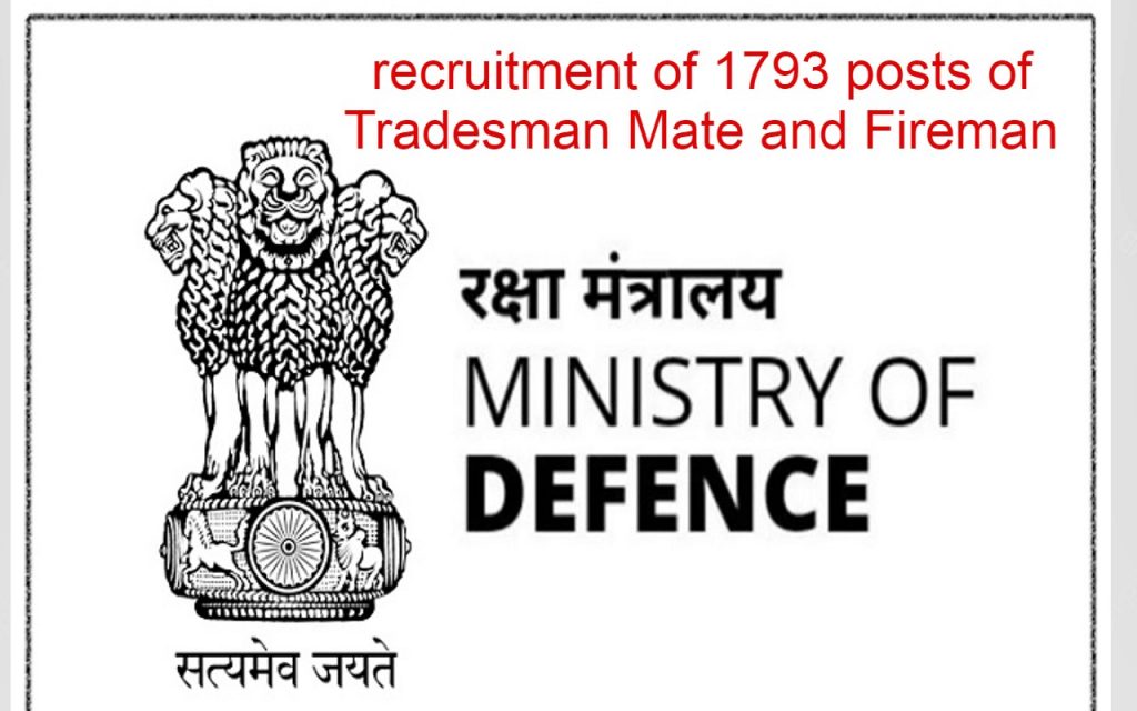 रक्षा मंत्रालय की ओर से ट्रेड्समैन मेट और फायरमैन के 1793 पदों पर भर्ती के लिए नोटिफकेशन जारी, डिटेल चेक करें