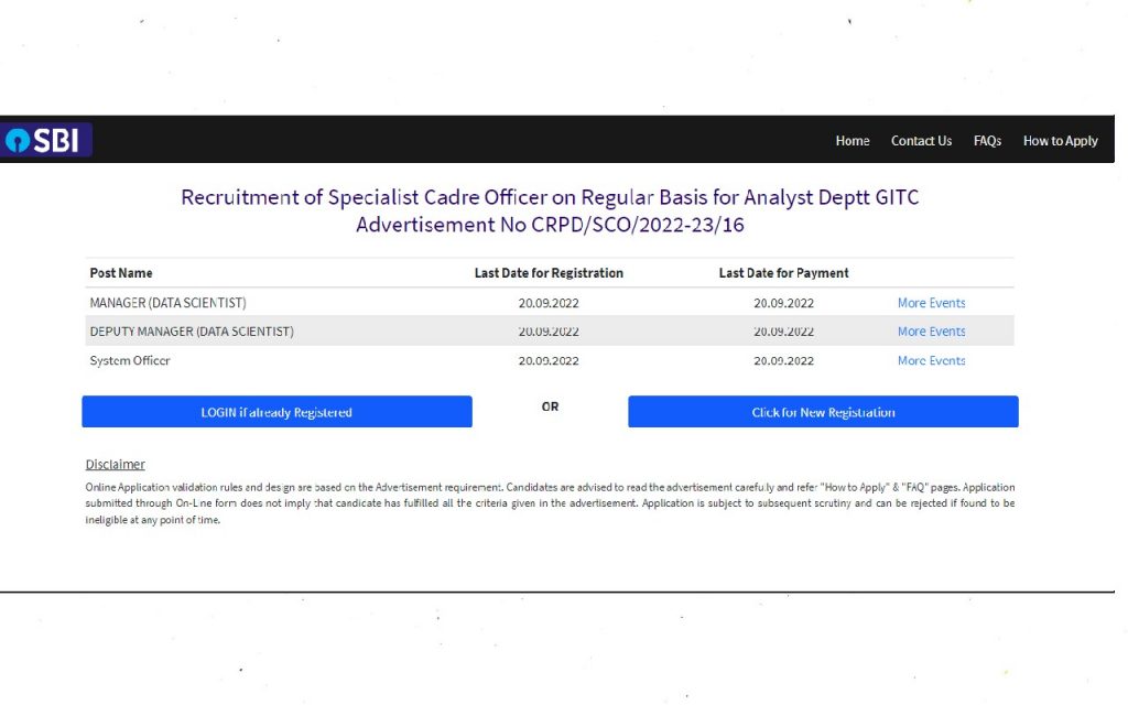 SBI SCO के लिए आवेदन समाप्त: 20 सितंबर, 2022