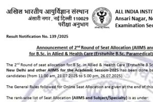 AIIMS दिल्ली ने यह सीट अलॉटमेंट उम्मीदवारों की AIIMS BSc Paramedical Entrance Exam 2025 में प्राप्त रैंक के आधार पर किया है. जो छात्र इस प्रक्रिया को समय पर पूरा करेंगे तो वही अंतिम रूप से एडमिशन ले सकेंगे.