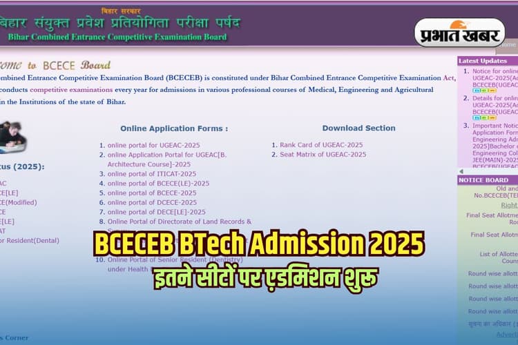 BCECEB BTech Admission 2025 in Hindi: बिहार संयुक्त प्रवेश प्रतियोगिता परीक्षा पर्षद (BCECEB) ने राज्य के 38 इंजीनियरिंग कॉलेजों में दाखिले के लिए मेरिट लिस्ट शुक्रवार को जारी कर दी है. इसके साथ ही छात्रों के लिए ऑनलाइन रजिस्ट्रेशन और च्वाइस फिलिंग की प्रक्रिया भी शुरू हो गई है. इस बार शैक्षणिक सत्र 2025-26 में कुल 13,860 सीटों पर दाखिला लिया जाएगा, जो सभी सीटें जेईई मेन 2025 के स्कोर के आधार पर भरी जाएंगी.