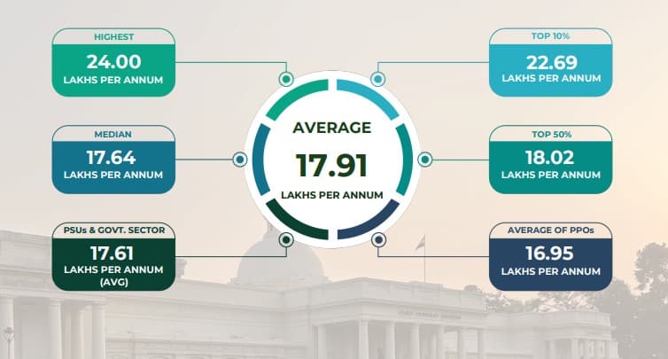 आईआईटी रुड़की का प्लेसमेंट रिकॉर्ड काफी अच्छा है. Deloitte, Accenture, Cognizant, Adani, Indian Oil और Vedanta जैसी टॉप कंपनीज प्लेसमेंट ऑफर देने के लिए आती है. 2025 में स्टूडेंट्स का हाईएस्ट पैकेज लगभग 24 लाख रूपये प्रतिवर्ष देखा गया है.