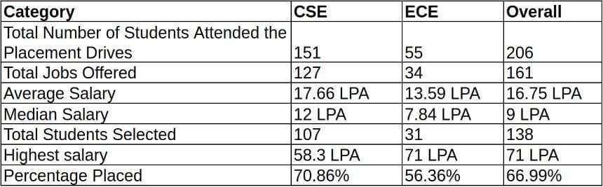 - IIIT Guwahati- ECE को टॉप पैकेज मिला जबकि CSE का हाईएस्ट ऑफर इससे कम रहा.