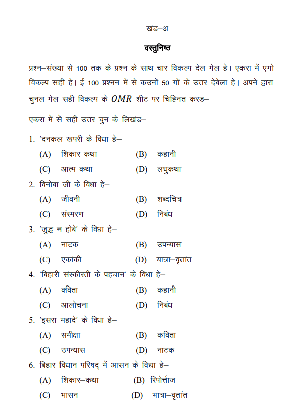 यहां देखें Bihar Board Magahi Sample Paper का PDF