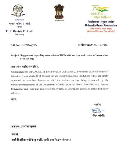 UGC Journalism Syllabus Change 2026: आज के दौर में पत्रकारिता (Journalism) सिर्फ खबरें लिखने तक सीमित नहीं रह गई है. इसे और भी सटीक और भरोसेमंद बनाने के लिए यूजीसी (UGC) ने एक बड़ा कदम उठाया है. अब देशभर के यूनिवर्सिटी में जर्नलिज्म की पढ़ाई करने वाले स्टूडेंट्स को सरकारी सर्वे और डेटा का एनालिसिस करना सिखाया जाएगा. यह बदलाव जर्नलिज्म की पढ़ाई को मॉडर्न और प्रैक्टिकल बनाने की दिशा में एक बड़ा और जरूरी कदम है. अब जर्नलिस्ट अपनी रिपोर्टिंग को केवल बातों तक सीमित नहीं रखेंगे, बल्कि उसे डेटा के साथ पेश करेंगे.