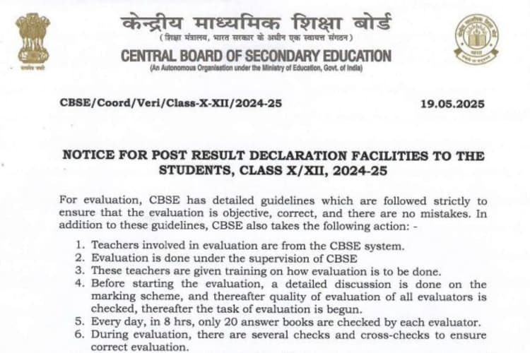 कैसे होता है मूल्यांकन? (CBSE Post Result Notice 2025)