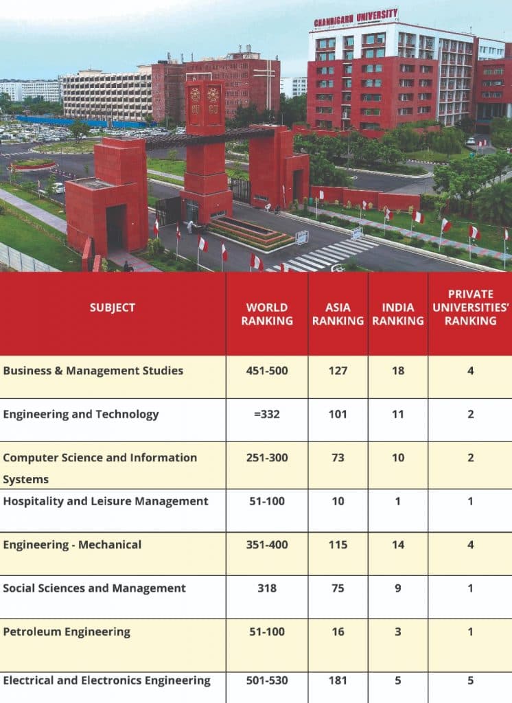 चंडीगढ़ यूनिवर्सिटी ने आठ सब्जेक्ट में शीर्ष स्थान पाया है. इससे उसकी रैंकिंग और सुधरी है.