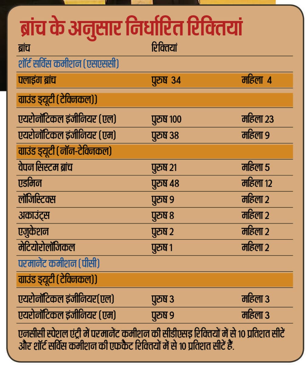 आयु सीमा : फ्लाइंग ब्रांच के लिए उम्मीदवारों की आयु 1 जनवरी, 2027 को 20 से 24 वर्ष के बीच होनी चाहिए यानी उम्मीदवार का जन्म 2 जनवरी, 2003 से 1 जनवरी, 2007 के बीच हुआ हो. ग्राउंड ड्यूटी (टेक्निकल एवं नॉन-टेक्निकल) पदों के लिए आवेदक की आयु 20 से 26 वर्ष होनी चाहिए यानी उम्मीदवार का जन्म 2 जनवरी, 2001 से 1 जनवरी, 2007 के बीच का होना चाहिए. इसके अतिरिक्त उम्मीदवार को अविवाहित होना चाहिए और प्रशिक्षण के दौरान विवाह की अनुमति नहीं होगी.