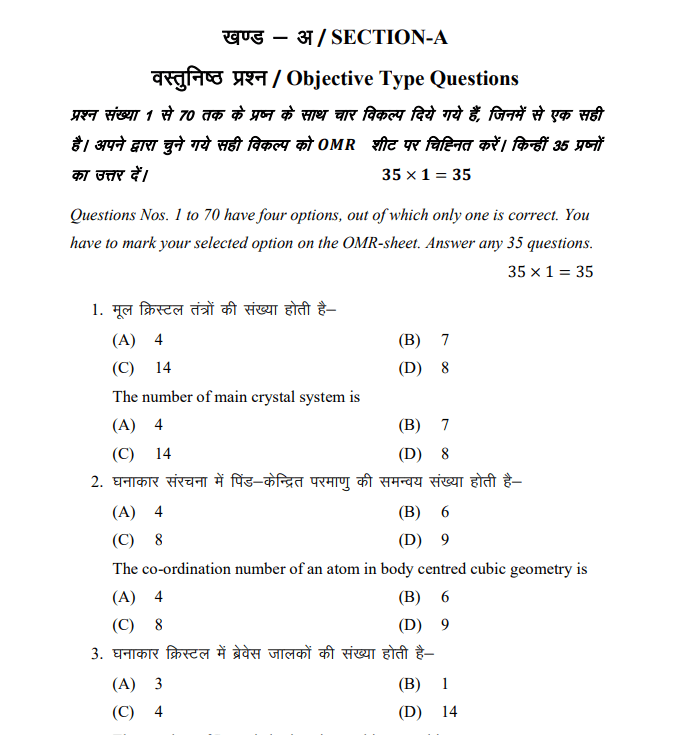 यहां देखें Bihar Board 12th Chemistry Sample Paper का PDF