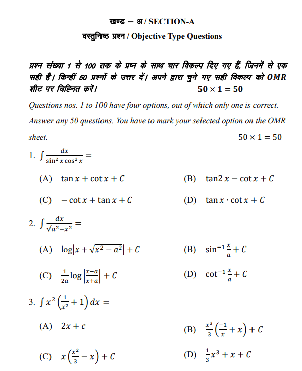 यहां देखें Bihar Board 12th Mathematics Sample Paper का PDF