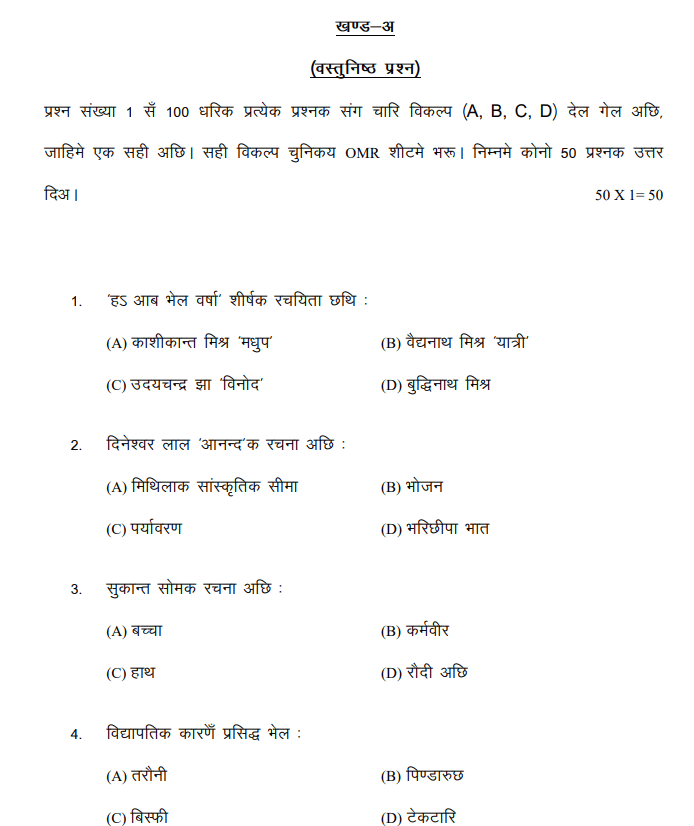 यहां देखें Bihar Board Maithili Sample Paper का PDF