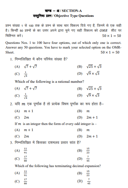 यहां देखें Bihar Board Mathematics Sample Paper का PDF