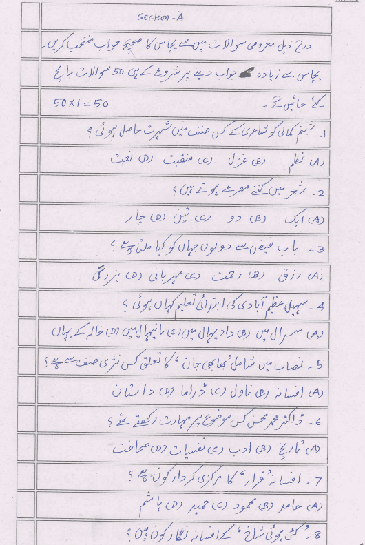 यहां देखें Bihar Board Urdu Sample Paper का PDF