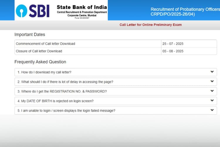 - SBI PO प्रीलिम्स परीक्षा तारीखें: 2 अगस्त से 5 अगस्त 2025