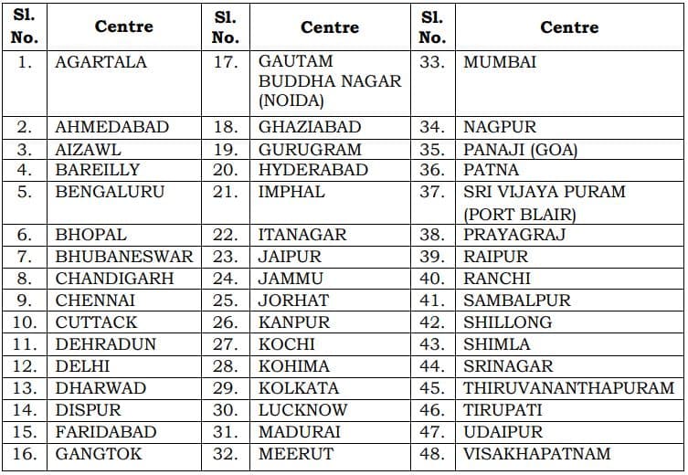 UPSC CMS परीक्षा देश के करीब 48 शहरों में आयोजित की जाएगी. उम्मीदवार आवेदन करते समय अपनी पसंद का एग्जाम सेंटर चुन सकते हैं. हालांकि हर सेंटर पर उम्मीदवारों की संख्या सीमित होती है. इसलिए सेंटर का अलॉटमेंट “पहले आवेदन करो, पहले सेंटर पाओ” के आधार पर किया जाएगा.