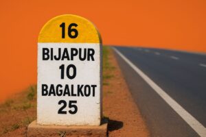 - नारंगी और सफेद रंग का माइलस्टोन दर्शाता है कि यह गांव की सड़क है.