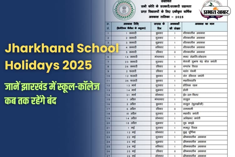 Jharkhand School Holidays 2025 in Hindi: झारखंड के सरकारी और सहायता प्राप्त स्कूलों में पढ़ने वाले लाखों बच्चों के लिए राहत भरी खबर है. राज्य सरकार के शिक्षा विभाग ने वर्ष 2025 के लिए स्कूलों की छुट्टियों का नया कैलेंडर जारी कर दिया है. इसके तहत इस बार गर्मी की छुट्टियां 22 मई से शुरू होकर 4 जून 2025 तक रहेंगी. पहले यह छुट्टियां 2 जून तक ही निर्धारित थीं, लेकिन भीषण गर्मी और लू को देखते हुए छुट्टियों को दो दिन और बढ़ा दिया गया है. (Jharkhand Education Department in Hindi)