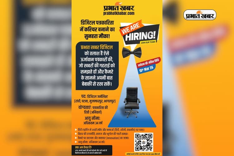 प्रभात खबर डिजिटल ने यह भर्ती रांची, पटना, मुजफ्फरपुर और भागलपुर यूनिट के लिए निकाली है. इस भर्ती प्रक्रिया के जरिए इन यूनिट में डिजिटल जर्नलिस्ट के पदों को भरा जाएगा.