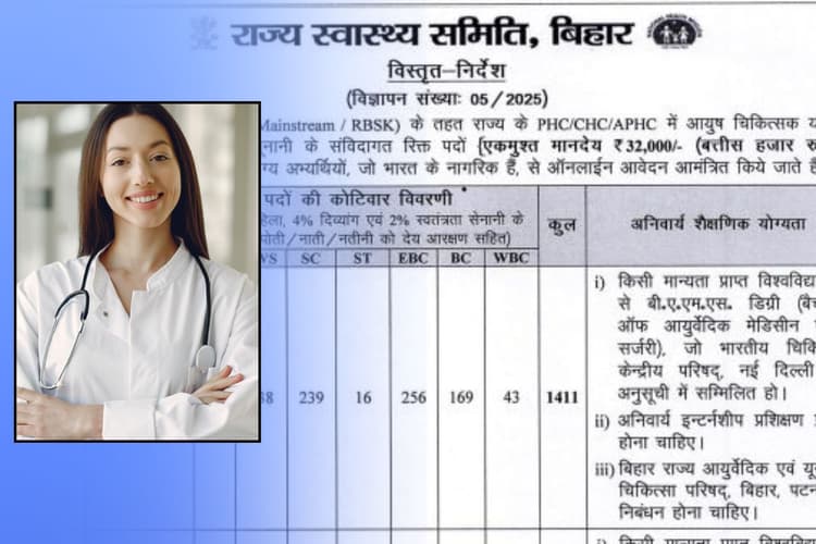 Bihar SHS Recruitment 2025: बिहार में Ayush Medical Officer की पोस्ट पर सरकारी नौकरी (Bihar Sarkari Naukri) का मौका है. आयुष चिकित्सा अधिकारी के 2619 पदों पर नोटिफिकेशन जारी किया गया है. इस लेख में भर्ती से जुड़ी सभी जरूरी जानकारी योग्यता, चयन प्रक्रिया, आवेदन तारीख, वेतन और आधिकारिक नोटिफिकेशन का लिंक दिया गया है जिससे आप आवेदन कर सकते हैं.