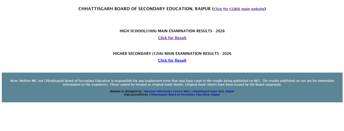 CGBSE CG Board Result 2026