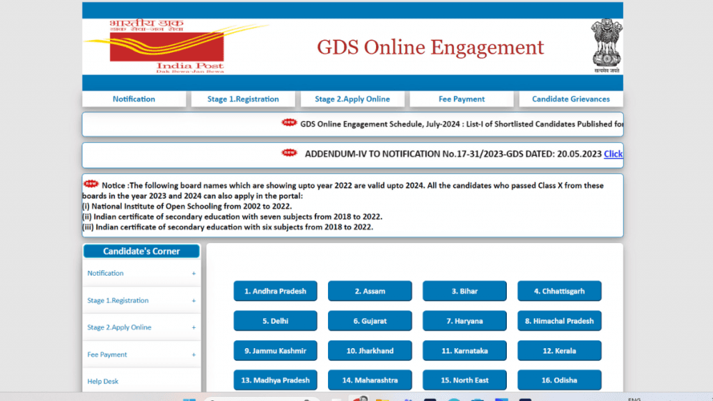 सबसे पहले अभ्यर्थी को पहले चरण में इंडिया पोस्ट जीडीएस की आधिकारिक वेबसाइट indiapostgdsonline.gov.in पर जाना होगा.