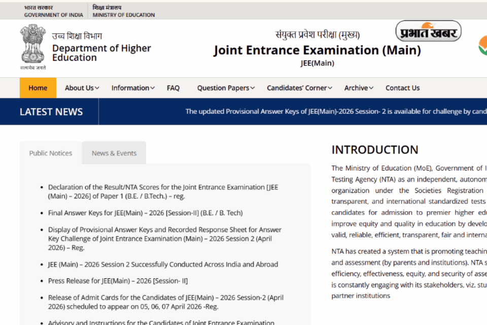 JEE Main 2026 Session 2: नेशनल टेस्टिंग एजेंसी (NTA) ने जेईई मेन 2026 सेशन 2 का रिजल्ट 20 अप्रैल 2026 को जारी कर दिया है. एग्जाम में शामिल होने वाले कैंडिडेट्स इसे NTA की ऑफिशियल वेबासइट पर देख सकते हैं. ऑफिशियल वेबसाइट का पता है, jeemain.nta.nic.in.