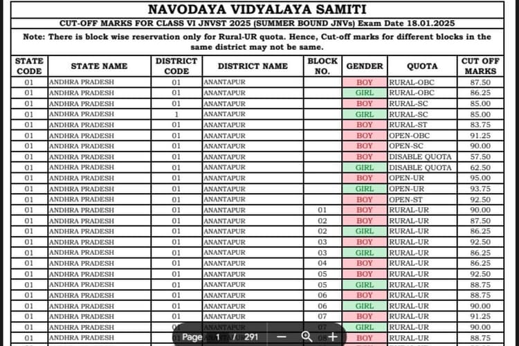 JNVST 2025 परीक्षा 18 जनवरी 2025 को आयोजित की गई थी। छात्रों को उत्तर कुंजी या कटऑफ अंक देखने और डाउनलोड करने के लिए कोई लॉगिन डिटेल दर्ज करने की जरूरत नहीं है. यह सुविधा सभी छात्रों के लिए सीधे उपलब्ध है. कैंडिडेट्स यहां दिए गए लिंक पर क्लिक करके अपने कटऑफ अंक देख सकते हैं.