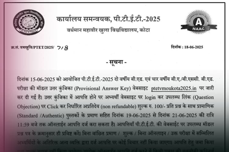 आपत्ति दर्ज कराने की प्रक्रिया (Rajasthan PTET 2025 Answer Key OUT)
