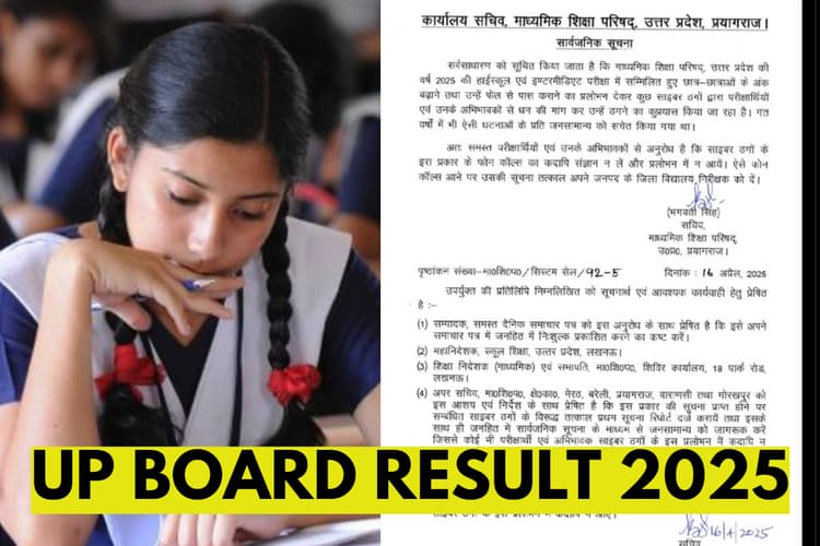 UP Board Result 2025: उत्तर प्रदेश माध्यमिक शिक्षा परिषद ने अपने एक्स हैंडल पर एक ऑफिशियल नोटिस जारी किया है जिसमें उन्होंने ये लिखा है कि कई तरह के साइबर ठगों द्वारा एग्जाम में पास कराने या नंबर बढ़ाने का कहकर उनसे पैसे मांगकर ठगी करने का काम किया जा रहा है. ऐसे में बोर्ड ने छात्रों और अभिभावकों से ये अपील की है कि वो किसी के भी झांसे में ना आयें. कई लोग इस तरह की भी लालच दे रहे हैं कि वो बच्चों को रिजल्ट जारी होने से पहले ही उनका परिणाम बता देंगे, इसको लेकर भी बोर्ड ने कहा है कि परिणाम को लेकर किसी भी प्रकार की जानकारी के लिए ऑफिशियल हैंडल का इंतजार करें.