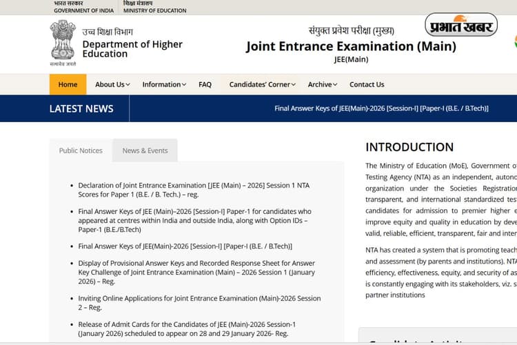 JEE Result 2026: नेशनल टेस्टिंग एजेंसी (NTA) ने JEE Main सेशन 1 का परीक्षा का रिजल्ट जारी कर दिया है. इस बार रांची और झारखंड के स्टूडेंट्स ने शानदार परफॉर्म किया है. झारखंड की वैष्णवी कुमारी 99.977 पर्सेंटाइल के साथ स्टेट टॉपर बनी हैं. वहीं रांची के नैतिक शर्मा ने 99.972 पर्सेंटाइल हासिल कर शहर में सबसे अधिक स्कोर किया है. हालांकि देशभर में 12 अभ्यर्थियों ने 100 पर्सेंटाइल प्राप्त किए हैं, लेकिन इनमें झारखंड का कोई छात्र शामिल नहीं है.