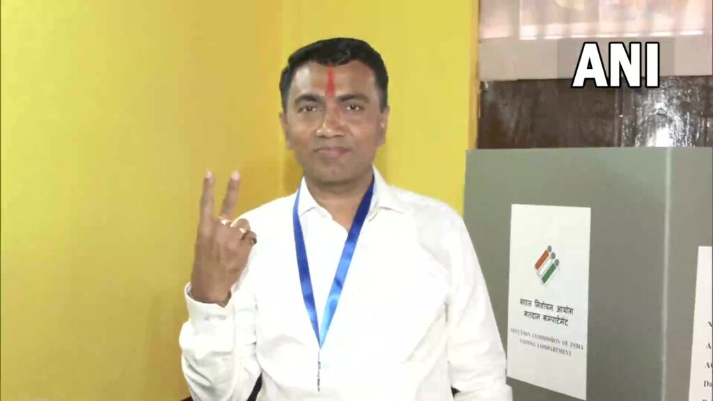 Goa CM Pramod Sawant casts his vote in Kothambi #GoaElections2022 pic.twitter.com/6m1qTcJmdn