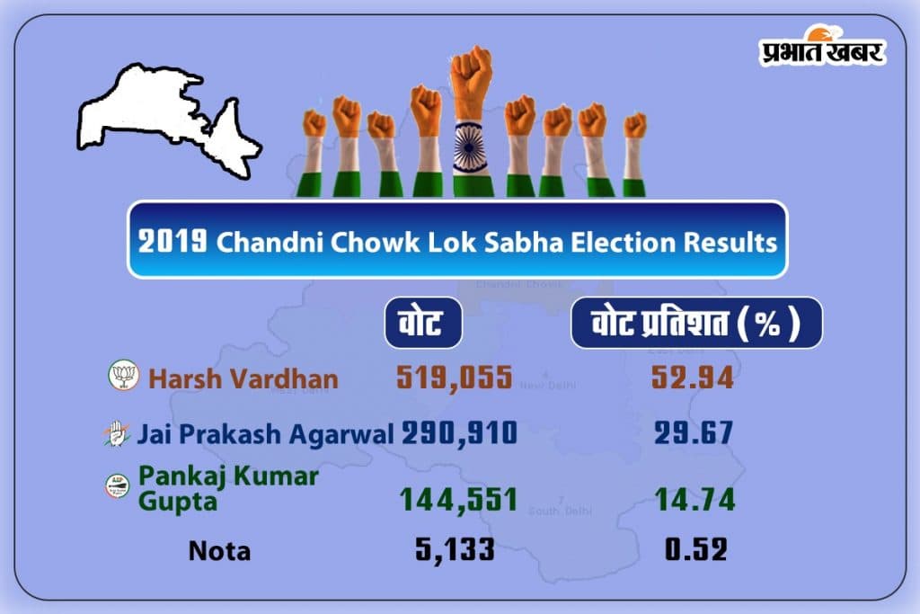 इस सीट पर 25 मई को वोट पड़े थे. इस निर्वाचन क्षेत्र में सेंट्रल दिल्ली, उत्तरी दिल्ली और उत्तर पश्चिम दिल्ली का हिस्सा आता है. 2019 में बीजेपी को 62 फीसद से ज्यादा वोट मिले थे. बीजेपी उम्मीदवार ने 2 लाख से ज्यादा मतों से चुनाव जीता था. डॉ. हर्षवर्धन के खिलाफ कांग्रेस से जयप्रकाश अग्रवाल चुनाव लड़े थे. उन्हें 2.9 लाख वोट मिले थे.