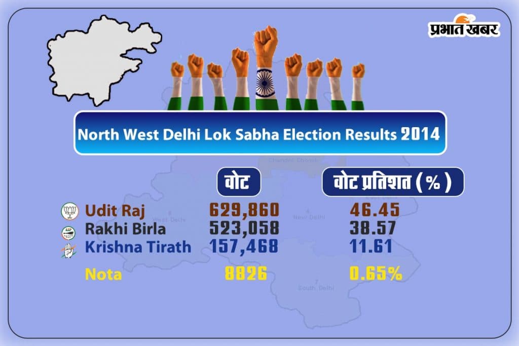 2014 के चुनाव की बात करें तो बीजेपी ने उदित राज को लड़ाया था. लेकिन इस बार वह कांग्रेस से लड़े हैं. 2014 के चुनाव में उदित राज काे 6.2 लाख वोट मिले थे. वोट प्रतिशत में बात करें तो उन्हें 46.45 फीसद वोट मिले थे. वहीं आप ने राखी बिरला को लड़ाया था, जिन्हें 5.2 लाख वोट मिले थे. वहीं कांग्रेस की ओर से कृष्णा तीरथ ने चुनाव लड़ा था.