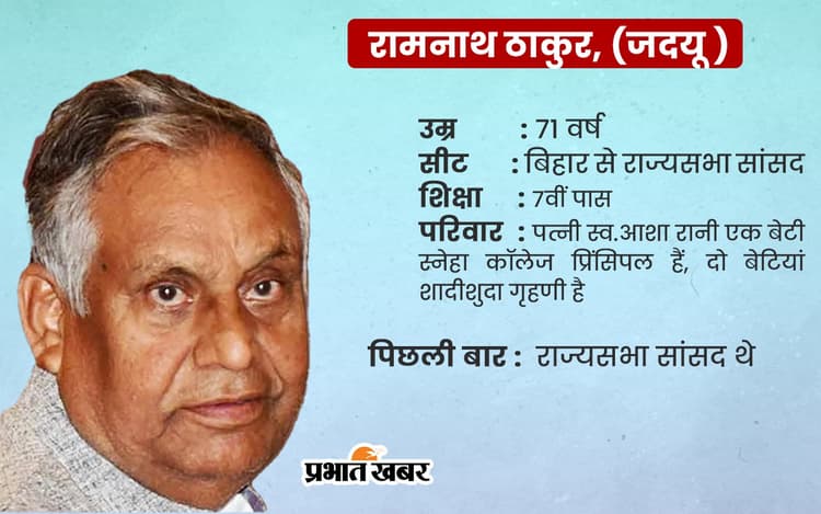 रामनाथ ठाकुर जदयू के प्रमुख नेताओं में एक हैं. उनके पिता कर्पूरी ठाकुर बिहार के चर्चित मुख्यमंत्री रह चुके हैं. कर्पूरी ठाकुर अपने फैसले, आरक्षण और सादगी भरी राजनीति के लिए याद किए जाते हैं. हाल में ही कर्पूरी ठाकुर को मरणोपरांत भारत रत्न से सम्मानित किया गया था. उनके भारत रत्न अवार्ड को रामनाथ ठाकुर के हाथों में ही सौंपा गया था. रामनाथ ठाकुर वर्तमान में जदयू की ओर से राज्यसभा के सांसद हैं और नीतीश कुमार के करीबी माने जाने वाले रामनाथ ठाकुर को अब केंद्र सरकार में मंत्री बनाया है. रामनाथ ठाकुर नाई जाति से ताल्लुकात रखते हैं.