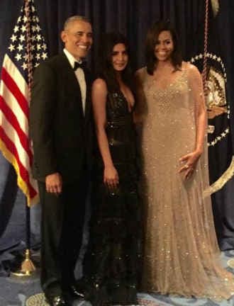 लॉस एंजिलिस : बॉलीवुड अभिनेत्री प्रियंका चोपड़ा ने शनिवार की रात अमेरिकी राष्ट्रपति बराक ओबामा के साथ व्हाइट हाउस में डिनर किया. इस दौरान बराक ओबामा और उनकी पत्नी मिशेल से उनकी मुलाकात हुई. व्हाइट हाउस करेस्पॉन्डेंट के सालाना डिनर (WHCD) में प्रियंका ने जुहैर मुराद का ब्लैक गाउन पहन कर पहुंची थी. डीनर के बाद प्रियंका ने ओबामा के साथ की तस्वीर इंटाग्राम पर शेयर की. इतना ही नहीं ट्विटर पर प्रियंका ने ओबामा को फनी और चार्मिंग बताया.