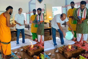 शांति पूजा करते दिखे एक्टर अक्षय खन्ना