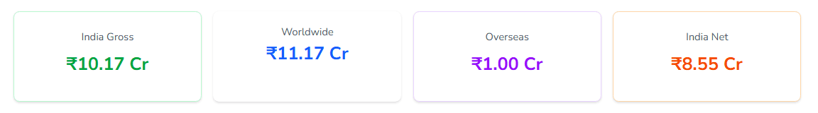 फिल्म ने भारतीय बॉक्स ऑफिस पर लगभग 10.17 करोड़ रुपये (ग्रॉस) की कमाई की, जबकि इसका वर्ल्डवाइड कलेक्शन करीब 11.17 करोड़ रुपये रहा.