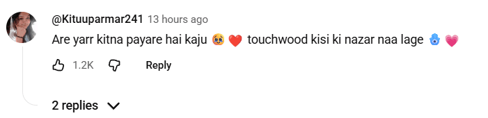 अब काजू के चेहरा देखने के बाद फैंस काजू पर खूब प्यार बरसा रहे हैं. @manishagiri9416 इस यूजर ने लिखा, अरे यार कितना प्यारा है काजू, टचवूड किसी की नजर ना लगे. दूसरे यूजर यूजर @debolinadas104 ने लिखा, काजू भी सेम टू सेम गोला की तरह दिखता है , सिर्फ नोज थोड़ा अलग है.