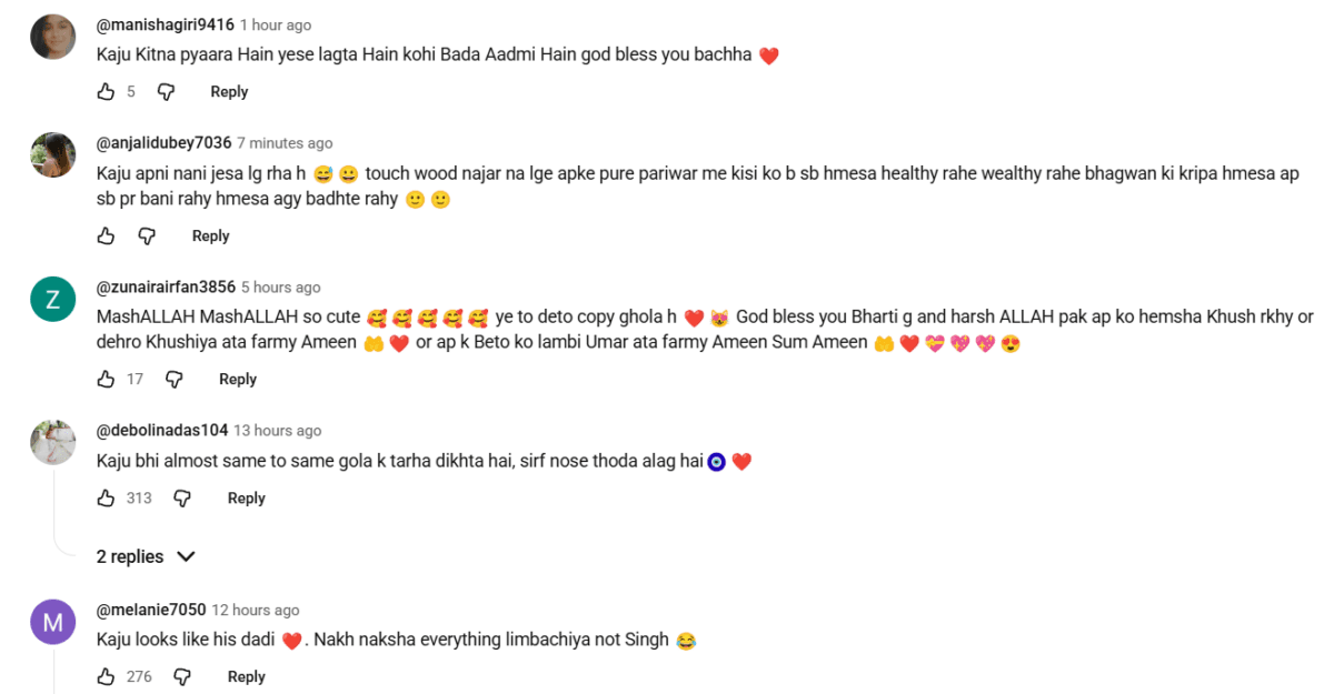 Bharti Singh: भारतीय कॉमेडियन भारती सिंह और हर्ष लिंबाचिया ने अपने छोटे बेटे यशवीर उर्फ काजू का चेहरा रिवील कर दिया है. यूट्यूब व्लॉग में जैसे ही काजू की झलक दिखाई गई, वीडियो तेजी से सोशल मीडिया पर वायरल हो गया है.