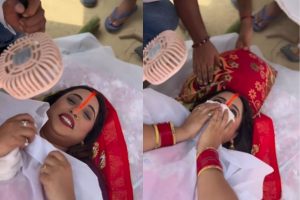दरअसल, रानी चटर्जी ने इंस्टाग्राम पर एक बिहाइंड द सीन्स (BTS) वीडियो शेयर किया है, जिसमें वह बताती हैं, “मैं शूट कर रही हूं अर्थी का सीन… जिसमें मैं मर गई हूं.” वीडियो में रानी सुर्ख लाल जोड़े में सुहागन बनकर अर्थी पर लेटी नजर आती हैं. कैमरे की ओर देखकर वह मुस्कुराती हैं और मजाक करती हैं, जिससे पूरा माहौल हल्का-फुल्का और मजेदार हो जाता है