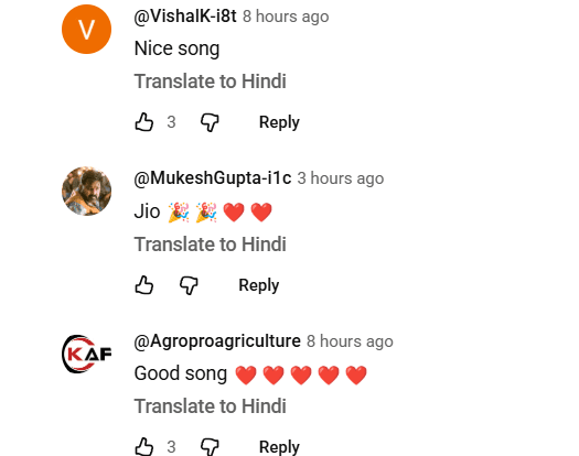 गाने “रंगदार बाबुसाहेब” को दर्शकों से जबरदस्त रिस्पॉन्स मिल रहा है और सोशल मीडिया पर यूजर्स जमकर अपनी प्रतिक्रियाएं दे रहे हैं. एक यूजर @SandeepSinghRajput-cd5xe ने लिखा, “Jio sher”, वहीं @MukeshGupta-i1c ने भी खुशी जाहिर करते हुए कमेंट किया, “Jio”. इसके अलावा @kshtriyashersingh7474 ने गाने की तारीफ करते हुए लिखा, “Mind blowing song ”. इन कमेंट्स से साफ है कि यह गाना लोगों को खूब पसंद आ रहा है और तेजी से वायरल हो रहा है.