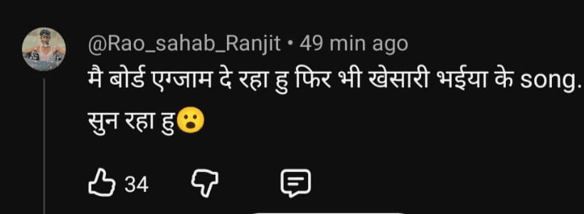 गाना का यूट्यूब पर रिलीज होते ही सोशल मीडिया यूजर्स अपना जबरदस्त रिएक्शन देना शुरू कर दिए हैं. एक यूजर ने लिखा, ‘मैं बोर्ड एग्जाम दे रहा हूं फिर भी खेसारी भैया का गाना सुन रहा हूं’. एक यूजर ने लिखा, ‘पूरा भारत हिल जाता है, एक ही नाम है सभी जगह ट्रेंडिंग स्टार खेसारी भैया’. एक यूजर ने लिखा, ‘मंदिर बिना पुजारी के भोजपुरी बिना खेसारी के अधूरा लगता है’.