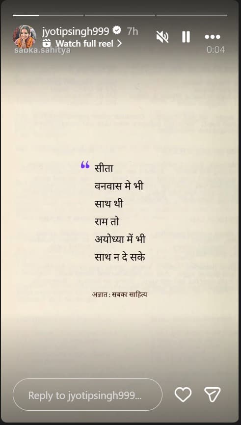 ज्योति सिंह की इंस्टा स्टोरी