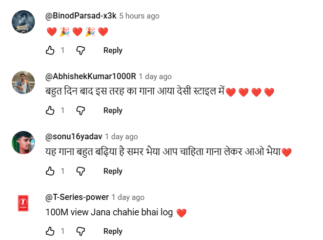इस गाने पर दर्शक लगातार अपनी रिएक्शन दे रहे हैं. किसी ने लिखा, 100 मिलियन पार जाएगा तो किसी ने लिखा, बहुत दिन बाद इस तरह का गाना आया देसी स्टाइल में.
