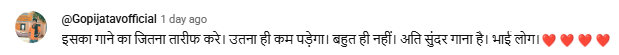 सोशल मीडिया पर गाने को लोगों ने जमकर सराहा. किसी ने लिखा, “सुपर डुपर हिट”. तो किसी ने कहा, “इसका जितना भी तारीफ करें उतना कम है. बहुत ही सुंदर गाना है.” कई लोगों ने इसे सुपर होली गाना 2026 बताते हुए रेड हार्ट इमोजी के साथ प्यार जताया.