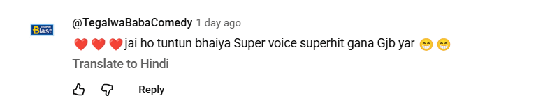 टुनटुन यादव के इस गाने को लेकर दर्शकों का जबरदस्त उत्साह देखने को मिल रहा है और सोशल मीडिया पर फैंस लगातार अपने रिएक्शन दे रहे हैं. एक यूजर ने लिखा,’ लिख कर ले लो ये सॉन्ग हर लग्न और शादी में बजेगा,’ तो एक ने लिखा ‘शानदार और लाजवाब प्रस्तुति’. वहीं टुनटुन यादव की आवाज की तारीफ करते हुए एक ने लिखा कि ‘जिस मां ने ऐसे बेटे को जन्म दिया, उसे कोटि-कोटि नमन, जिसकी आवाज पर आज पूरी दुनिया झूम रही है.’