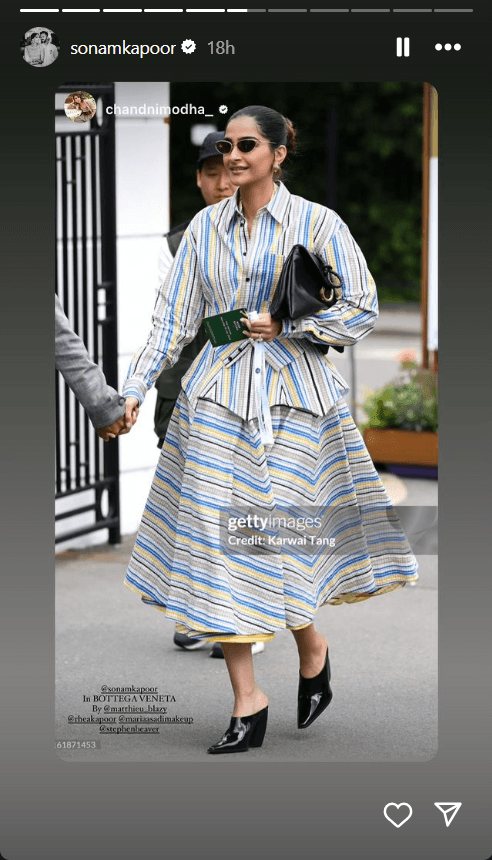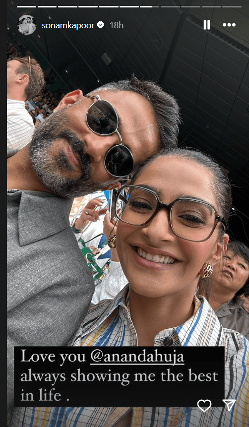 अपनी इंस्टाग्राम पर विंबलडन महिला फाइनल के समर्थन में, सोनम ने कई स्टोरीज साझा कीं. एक वीडियो में उन्होंने कहा, “महिला विंबलडन का फाइनल देखने जा रही हूं. बहुत उत्साहित हूं.” उन्होंने इंस्टाग्राम पर एक तस्वीर भी पोस्ट की, जिसमें लिखा था, “मुझे जीवन में सर्वश्रेष्ठ दिखने के लिए हमेशा आपसे प्यार है, आनंद आहूजा.”